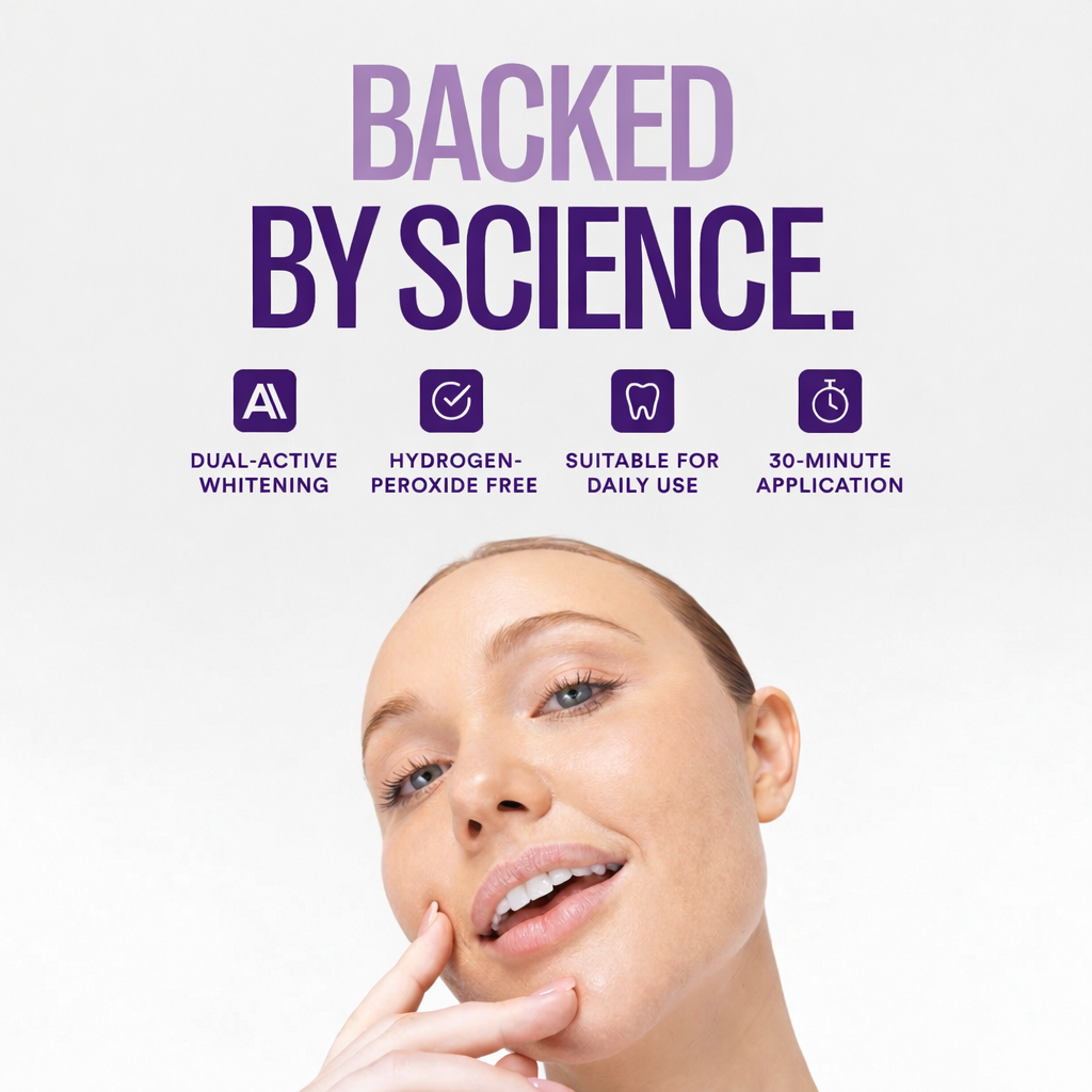 We use PAP+ — a 100% natural whitening compound that lifts yellow stains and deep discoloration without a single drop of peroxide. No chemicals burning your nerves. No sensitivity stopping you halfway. Just the cleanest, most effective whitening ingredient science has found — working quietly while you go about your day.